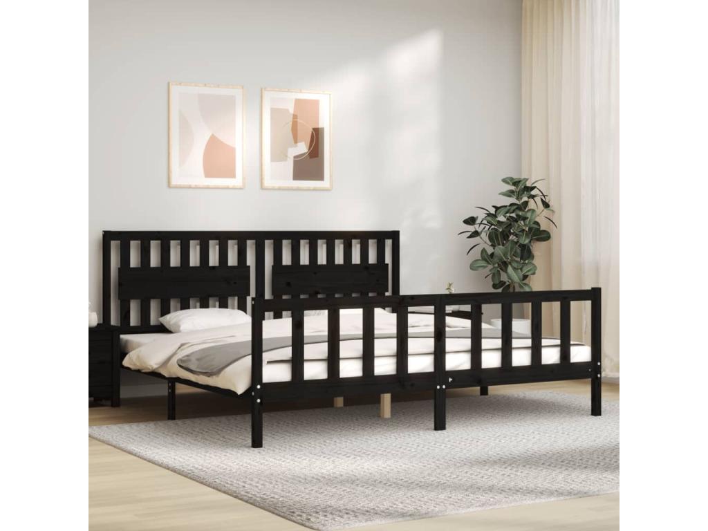 Cadre de lit avec tête de lit noir 200x200 cm bois massif TNAX78437