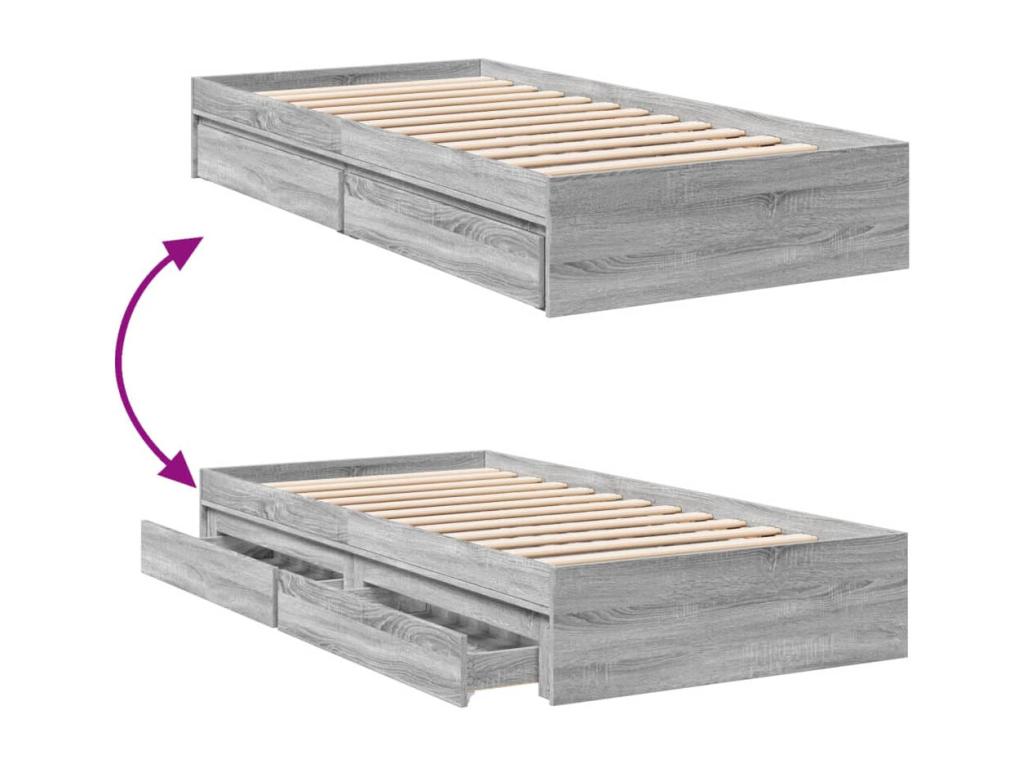 Cadre de lit et tiroirs Chezlova gris 90x190 cm bois d'ingénierie JBAN73220