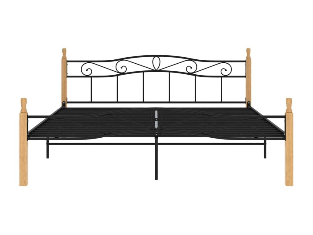 Cadre de lit Noir Métal et bois de chêne massif 180x200 cm NBWZ61784