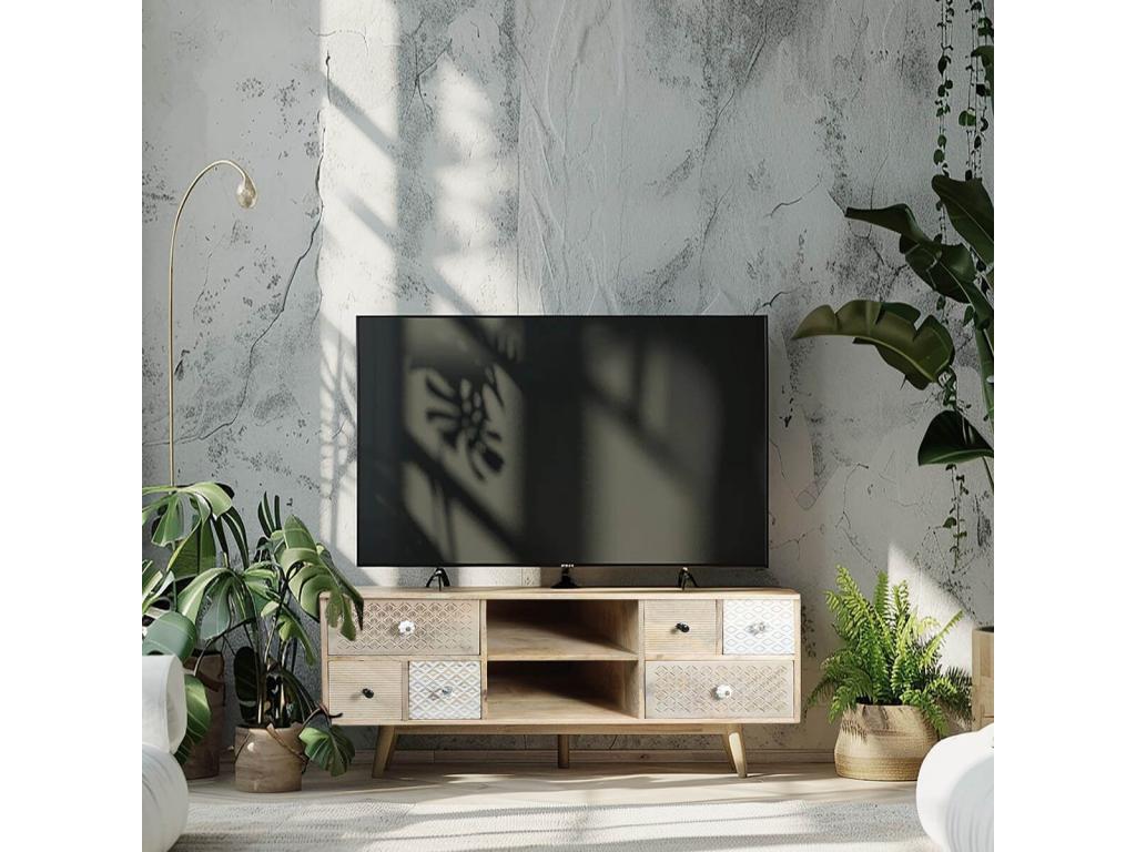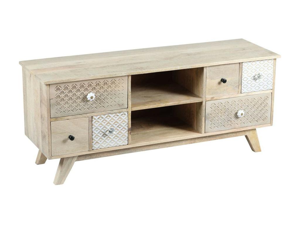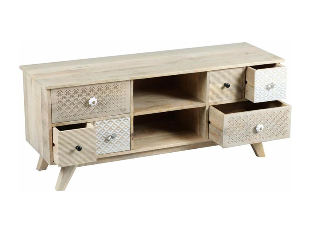 Chezlova - Meuble TV 6 Tiroirs en Manguier Massif Clair LDQK71002