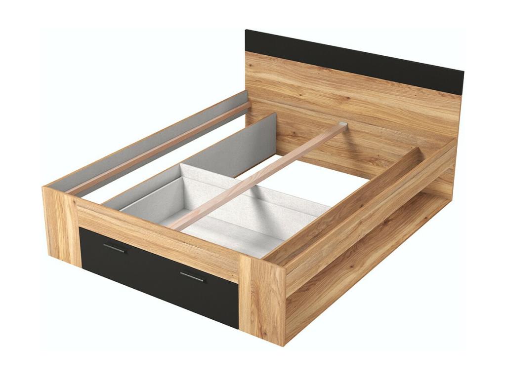Lit adulte 160x200 avec tiroirs intéChezlovas - Collection Chezlova- Couleuris chêne clair et noir. XAVI16776