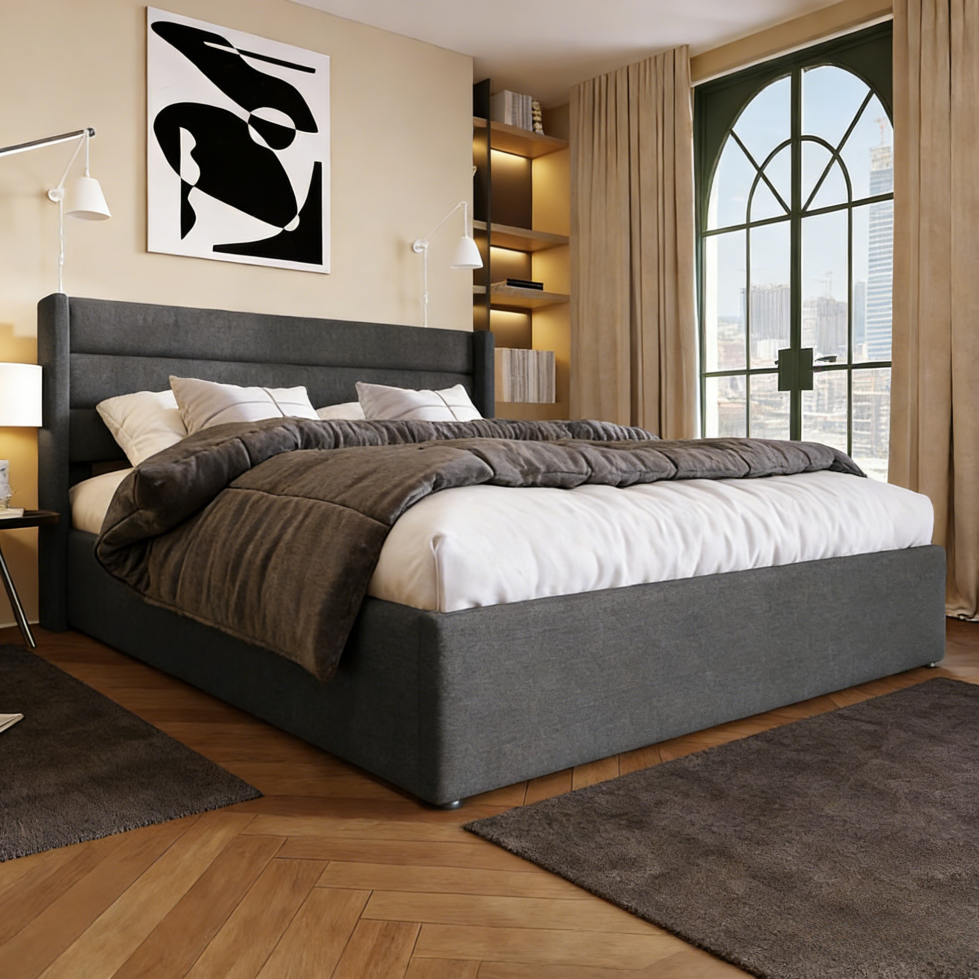 Lit Double Capitonné Coffre Hydraulique 140x200cm En Métal et Lin - Sommier À Chezlova En Bois - Gris PKVX29530