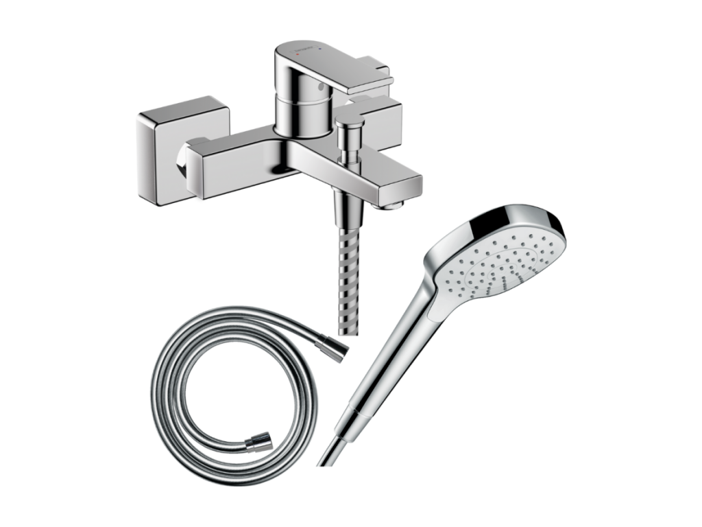 Pack mitigeur bain douche mécanique Decohaute Vernis Shape C2 Flexible Isiflex Pommeau Decohaute Select E EcoSmart blanc/chromé XWAY12267